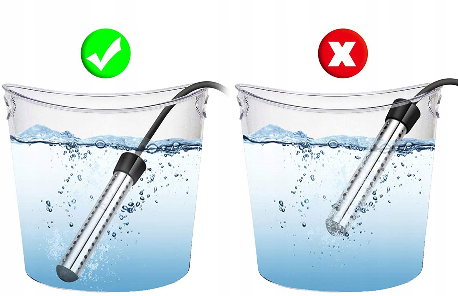 - Zawsze całkowicie zanurz grzałkę w wodzie przed włączeniem.