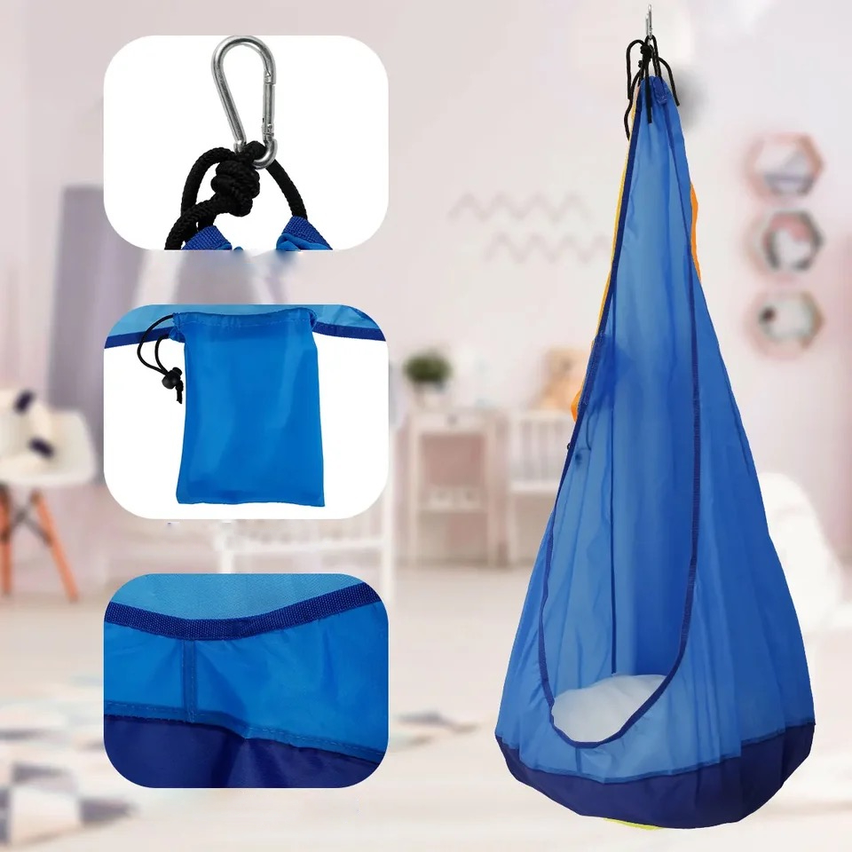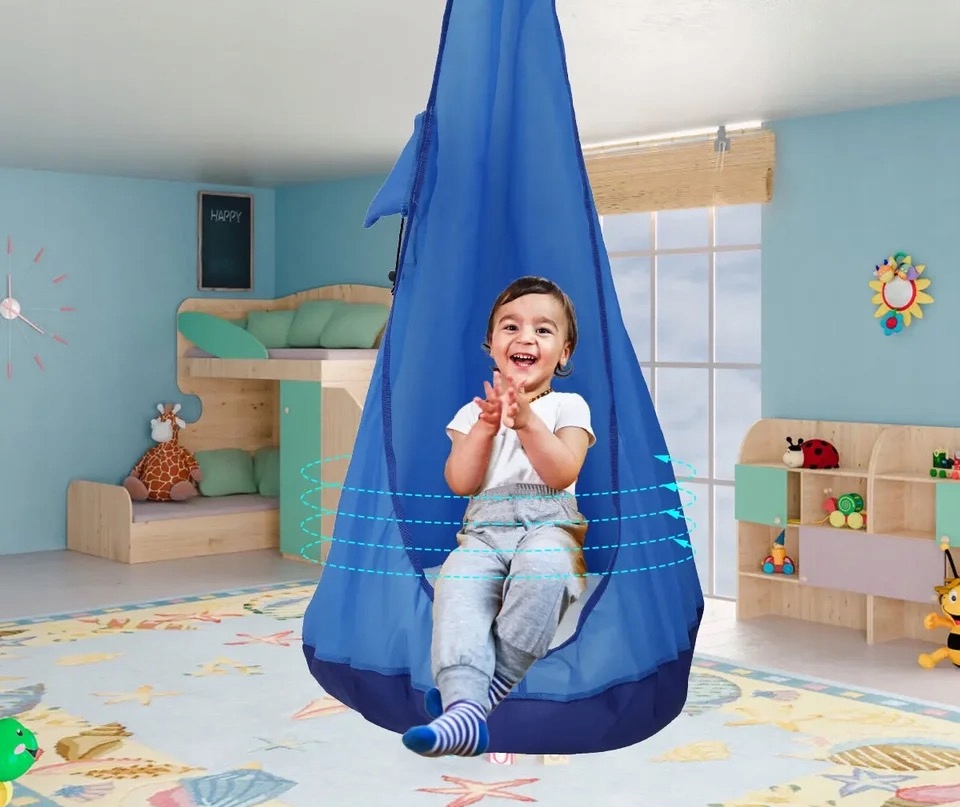 HUŚTAWKA OGRODOWA KOKON DLA DZIECI WISZĄCY FOTEL DO POKOJU NIEBIESKI