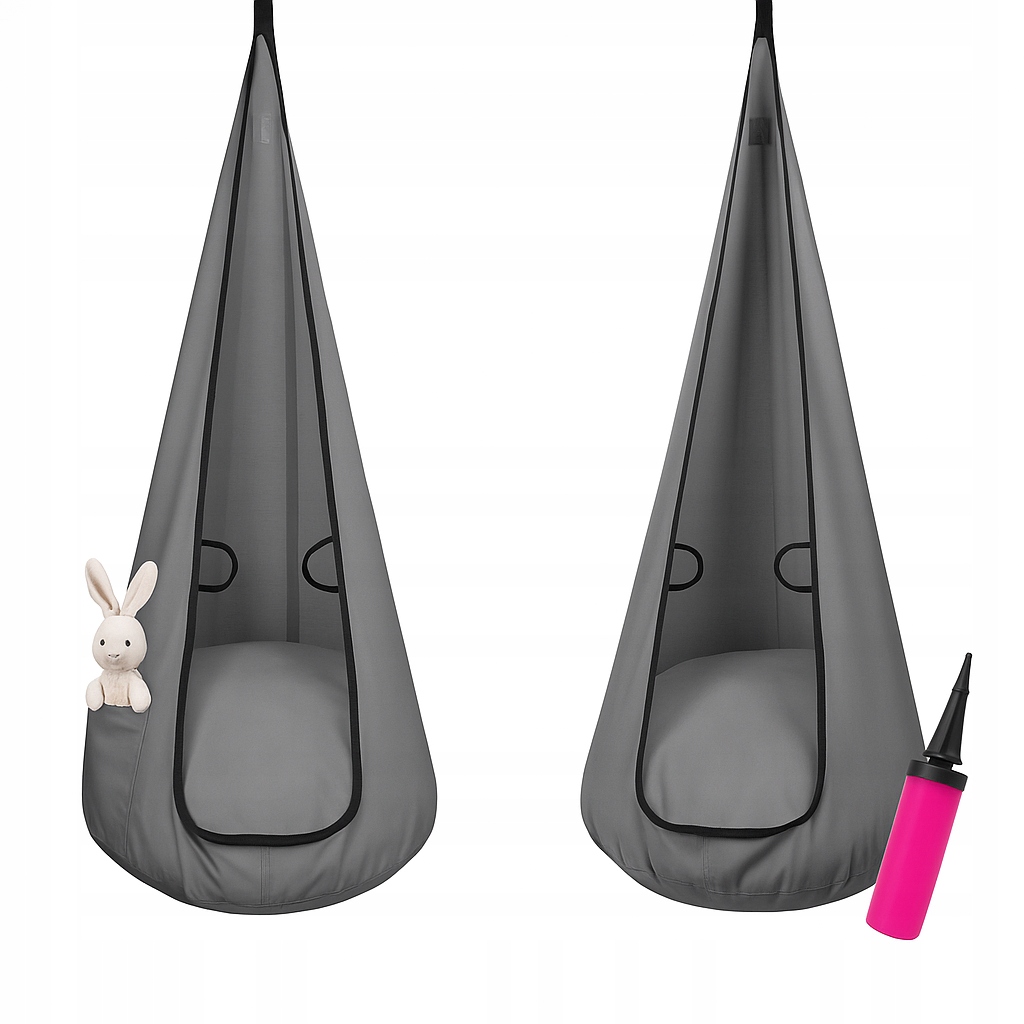 HUŚTAWKA KOKON DLA DZIECI + POMPKOWANA PODUSZKA + POMPKA + UCHWYTY + KIESZONKA | SZARA