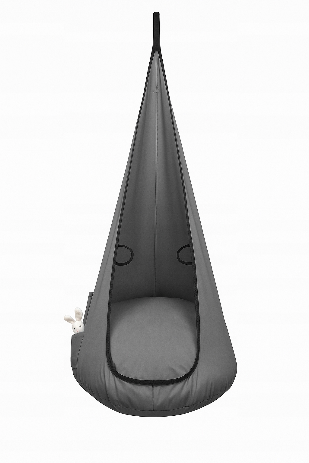 - Szary kokon wiszący z wytrzymałej tkaniny